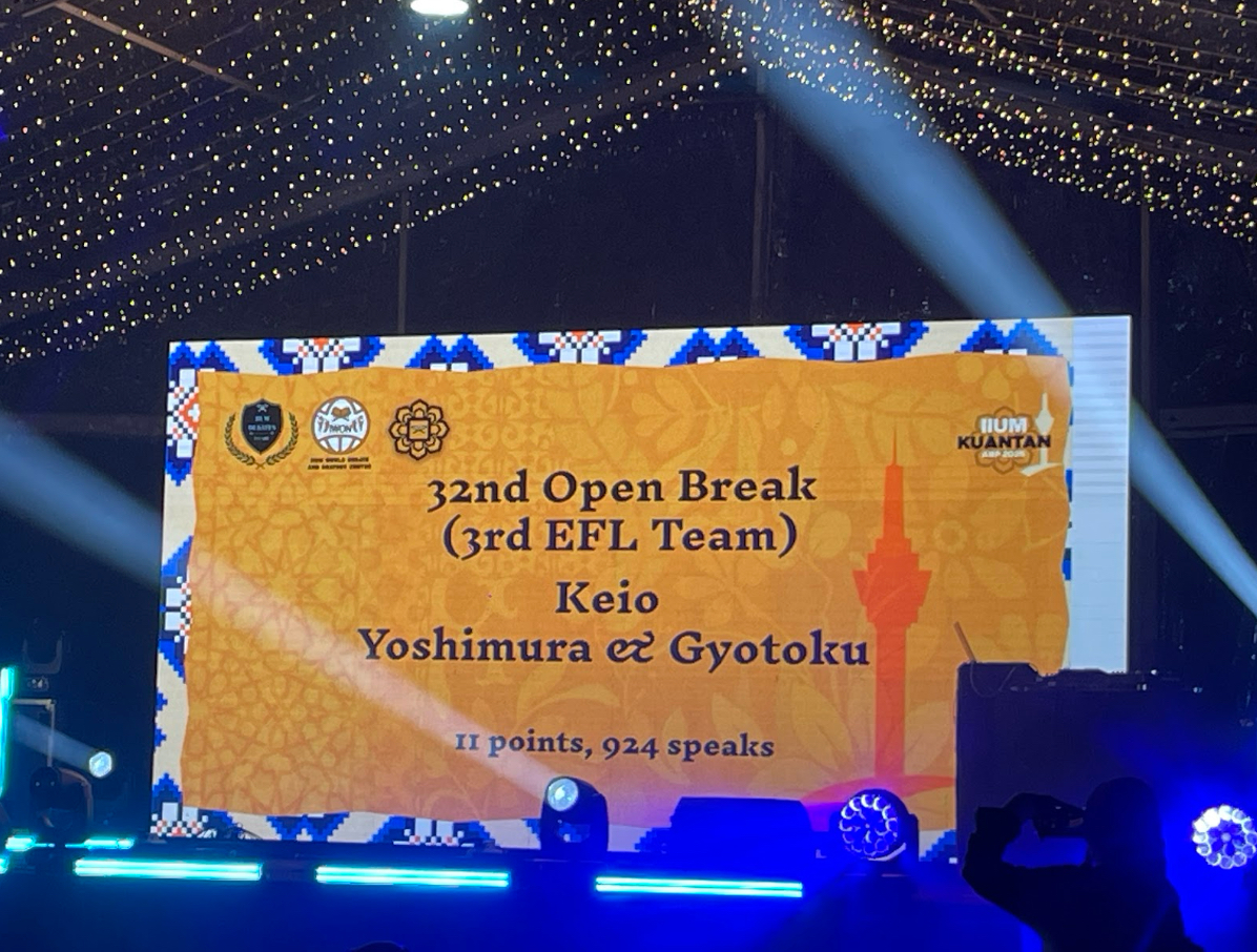 そして、大会期間中僕たちを日本からタブ上で追い続けて毎ラウンドコメントをくれていた方々、大会期間中にディベート内外の色んな話を聞いてくれたKDSの先輩、同期、後輩本当にありがとうございました!!自分にとっては凄く心の支えになりました